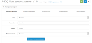 Модуль позволяет получать уведомления о заказах, отзывах о товаре, новых зарегистрированных пользователей, возврат товара и сообщений с формы контактов в ICQ New.