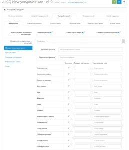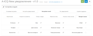 - Дальше отметьте галочкой поля, которые должны приходить в уведомлении и нажмите сохранить.