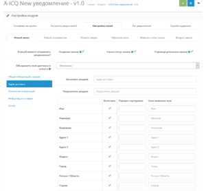 Так же есть возможность настроить уведомление о смене статуса заказа.