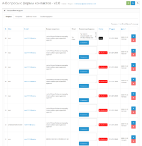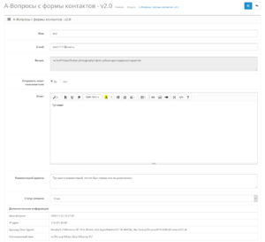 - Изменить статус вопроса - (Спам, В обработке, Обработан) при желании можно добавить и другие статусы;