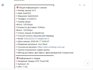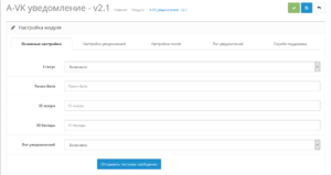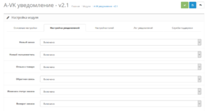 Модуль позволяет получать уведомления о заказах, отзывах о товаре, новых зарегистрированных пользователей, возврат товара и сообщений с формы контактов в Вконтакт.