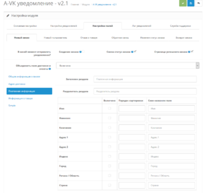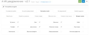 Дальше отметьте галочкой поля, которые должны приходить в уведомлении и нажмите сохранить.