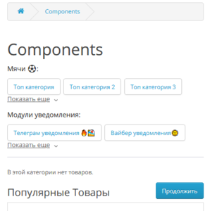 - Для каждой категории подборки можно указать: название(так же поддерживается эмодзи), ссылку на категорию или производителя или указать произвольную ссылку (например на посадочную страницу);
