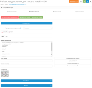 - Создание для каждого статуса заказа своего шаблона. Он может быть: текст, текст + кнопка, текст + кнопка + изображение - Только для viber уведомления. Для смс уведомления поддерживается только текст.
