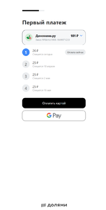 Сервис для оплаты покупок частями от Т-Банк. Оплата происходит картой, платежи списывает через равный промежуток время автоматически. Магазин получает сразу полную оплату заказа.