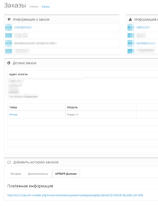 - Возможность повторно выслать ссылку на оплату из админ панели