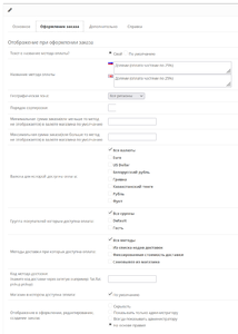 - Возможность задания максимальной суммы заказа при котором метод не будет выводиться.
