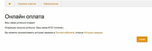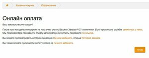- При оплате сразу после оформления заказа на страницах успешной и ожидаемой оплаты вывод текста, что заказ создан.