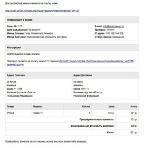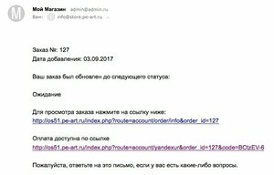 - Автоматическая смена статуса при получении оплаты(возможность отправить письмо автоматически покупателю и админу при поступлении)
