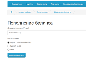 - Уникальная система пополнения личного счета покупателя БАЛАНС МАГАЗИНА (Дальнейшая оплата заказов с баланса или ручное списание администратором суммы с баланса)