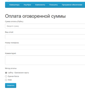 - Возможность добавления комментария для дальнейших действий в письмо о успешной оплате(использование переменных таких как «номер заказа», «сумма заказа», «комиссия» и html тегов)