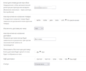 - Возможность указать обобщенное название доставки для отображения в чеке