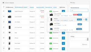 Обратите внимание! Модуль не добавляет дополнительные фильтры и не влияет на их работу, а лишь улучшает автозаполнение при поиске товаров в админке