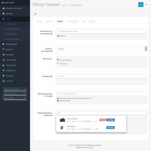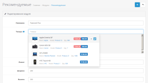 - при выборе рекомендуемых товаров в статьях блога (только для сборки ocStore 3x)