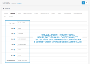 При создании нового или редактировании существующего товара пустые поля будут автоматически заполнены в соответствии с указанными настройками.