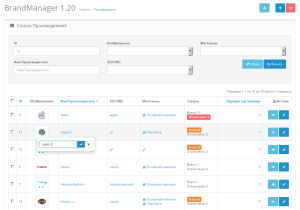 ✔ быстрое редактирование данных производителей прямо в списке (ajax)
