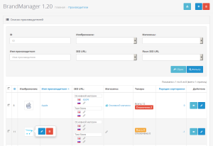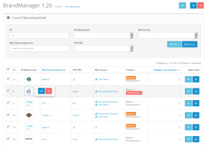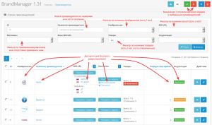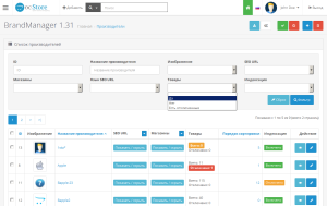 Brand Manager значительно упрощает и ускоряет процесс работы с брендами в админке, добавляя поиск и фильтры с возможностью сортировки.