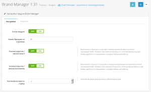 ✔ быстрое включение / отключение всех товаров у выбранных производителей