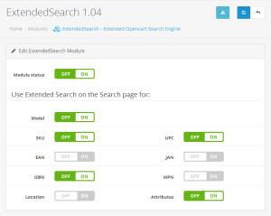 При активированном модуле на странице поиска будут показаны товары с частичным совпадением запроса в полях Model, SKU, UPC, EAN, JAN, ISBN, MPN, Location и в атрибутах - в соответствии с выбранными настройками