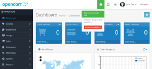 1. Загрузить файл maintenance_mode_warn.ocmod.xml в Дополнения > Установка дополнений