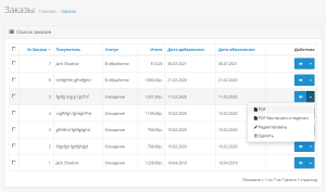 - стандартный список заказов в админке