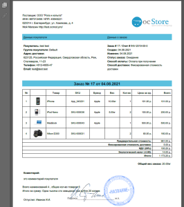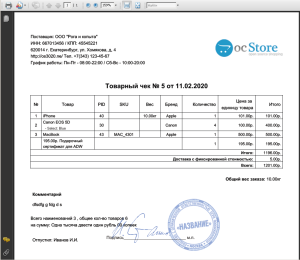 InvoicePlus PDF позволяет создать PDF документ для выбранного заказа в виде счета или товарного чека, в зависимости от оформления.