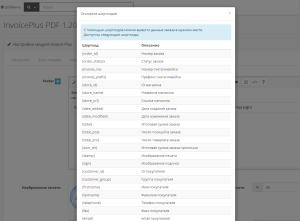 Полный список досутпных шорткодов и их значений указан в настройках модуля.