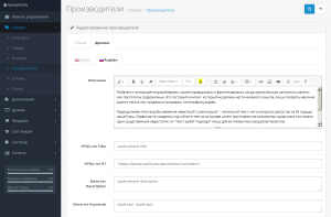 Также добавляет альтернативный заголовок производителя, метатеги meta-title, meta-description и meta-keywords для поисковиков и улучшения SEO