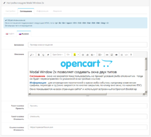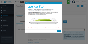 Окно показывается на всех страницах сайта и использует встроенный в Opencart Bootstrap
