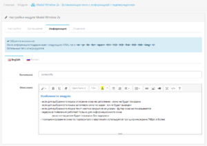 * Модуль выводит HTML-контент и поддерживает следующие теги: <a><p><b><br><span><h1><h2><h3><h4><h5><h6><img>