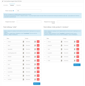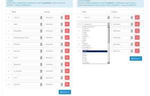 модуль автоматически определяет все доступные поля этих таблиц и позволяет задать очередность их вывода