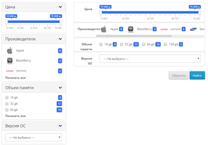 - 9 типов фильтров - слайдеры, чекбоксы и тд