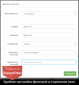 Dream Filter уже готов к использованию в вашем магазине. Мы проделали большую работу для того, чтоб удовлетворить потребности большинства интернет-магазинов и автоматизировать всю рутину настройки.