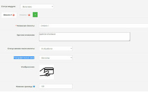 - Нижняя граница (Минимальная сумма заказа. Ниже данной суммы, способ оплаты будет недоступен)