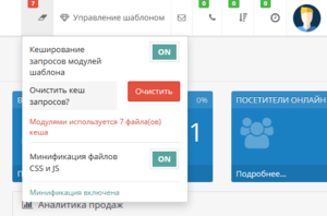 В шаблоне идет модуль управления Минификацией файлов CSS и JS для быстрой загрузки шаблона, а также Модуль кеширования запросов модулей шаблона.