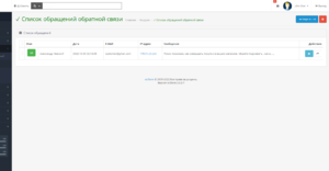 1. После того, как покупатель отправит сообщение со страницы Связаться с нами, оно станет отображаться в общем списке всех подобных обращений на странице данного модуля.