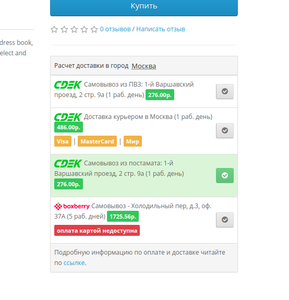 - Доставка Boxberry + наложенный платеж + выбор ПВЗ на карте