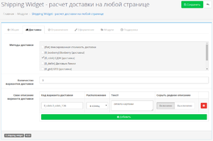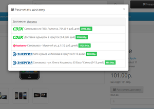 - Модуль не имеет своих вариантов доставки, он выводит результаты расчета установленных в магазине модулей доставки