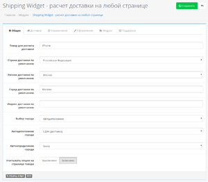 Модуль дает возможность рассчитать стоимость доставки на любой странице