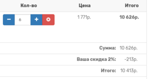 - Скидка задается в процентах и считается от общей стоимости заказа.