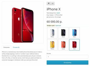 - - Переключение вариантов в карточке товара: со сменой названия, цены, артикула, изображения товара, характеристик, описания.