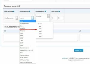 - Вывод в блок связанных товаров различных полей на выбор, включая и основные изображения с возможностью заменить на свои.