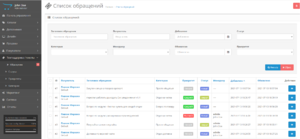 - сортировка по полям (Заголовок Категория Приоритет Статус Поддержка Дата обращения Дата обновления)