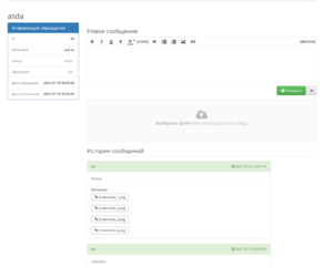 - Добавление вложений в переписках (клиент админ)