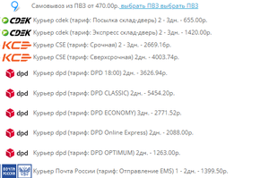 - Автоматический расчет стоимости доставки с учетом габаритов, веса заказа, персональных скидок и тарифов служб доставки