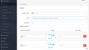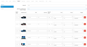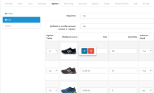 - Добавляет новые поля к значениям опций в товаре: Артикул, Изображение (Изображения опций можно задавать непосредственно в товаре).