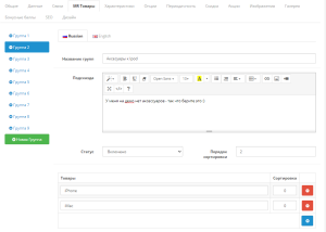 Возможность создать группу для товаров и добавить туда выбранные товары + сортировка