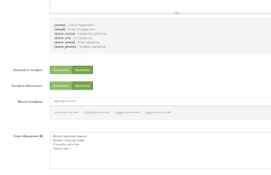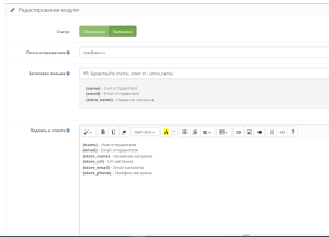 - Подпись в ответе - маски ({name} - Имя отправителя, {email} - Email отправителя, {store_name} - Название магазина, {store_url} - Url магазина, {store_email} - Email магазина, {store_phone} - Телефон магазина (можно использовать html))