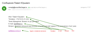 - Заголовок письма - маски ({name} - Имя отправителя, {email} - Email отправителя, {store_name} - Название магазина)