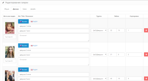 Настройка группы галерей: